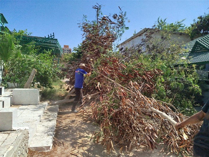 استمرار أعمال رفع مستوى النظافة وتطوير المقابر القديمة بحي الزهور ببورسعيد