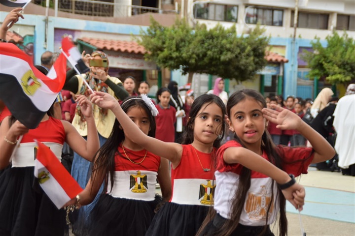 مدير تعليم بورسعيد يشارك طلاب مدرسة تنيس الابتدائية احتفالهم بنصر أكتوبر