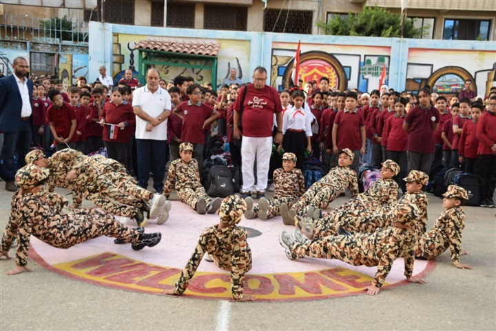 وبدأت فعاليات الطابور بتلاوة آيات من الذكر الحكيم تلاها حديث شريف، ثم كلمة عن ذكرى نصر أكتوبر المجيد قدمها طلاب المدرسة تحت إشراف معلمي اللغة العربية والتربية الدينية، وتضمنت فقرات إذاعية متنوعة وفنوناً إعلامية متميزة.