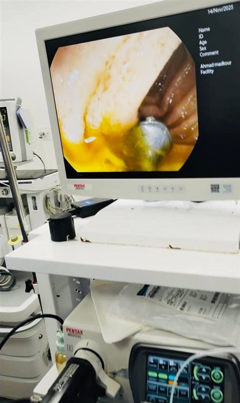ورغم ذلك، وبفضل يقظة الفريق الطبي وإصرارهم على إنقاذ الطفل دون اللجوء لجراحة مفتوحة قد تعرضه لمضاعفات خطيرة، تقرر التدخل الفوري بالمنظار وإعطاء فرصة لمحاولة استخراج المسمار قبل أن يؤدي إلى ثقب بالأمعاء.