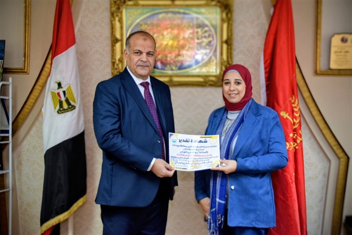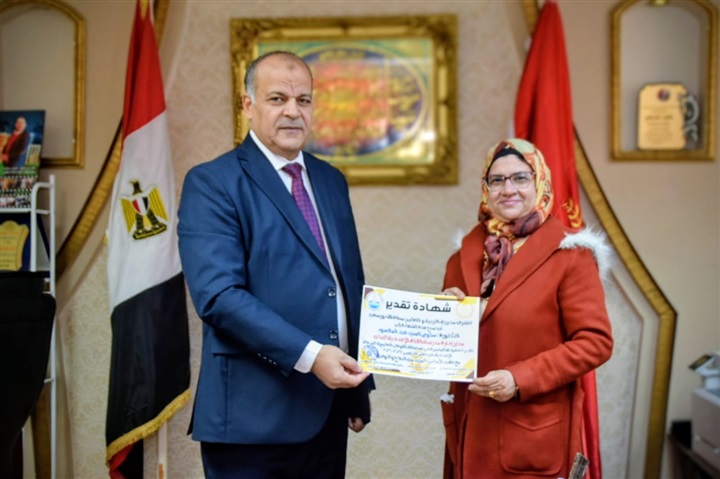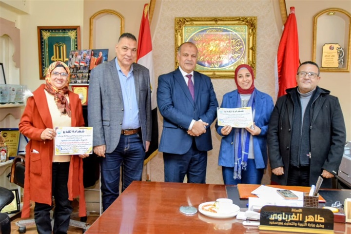 تكريم إدارة مدرسة القناة الإعدادية بنات ببورسعيد لاستضافة القوافل التعليمية