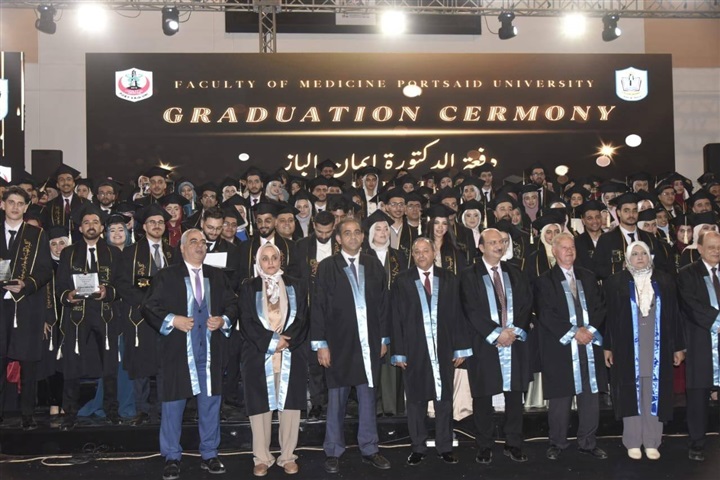 بحضور اللواء اركان حرب محب حبشي محافظ بورسعيد تقدم الأستاذ الدكتور شريف يوسف صالح رئيس جامعة بورسعيد، حفل تخرج الدفعة الثامنة من طلاب كلية الطب، دفعة الدكتورة ايمان الباز الذي أقيم بالصالة المغطاة بكلية علوم الرياضة ببورفؤاد وبحضور لفيف من القيادات الشعبية والسياسية والتنفيذية والأمنية وقيادات جامعة بورسعيد من السادة نواب رئيس الجامعة وعمداء كليات الجامعة ونقيب أطباء بورسعيد والاستاذ سليم التلوي مسئول شئون الجامعات والانشطة الطلابية بسفارة فلسطين بالقاهرة ومسؤولي التامين الصحي الشامل ووزارة الصحة ببورسعيد لفيف من السادة أعضاء هيئة تدريس كلية الطب والسادة اولياء امور الطلاب.