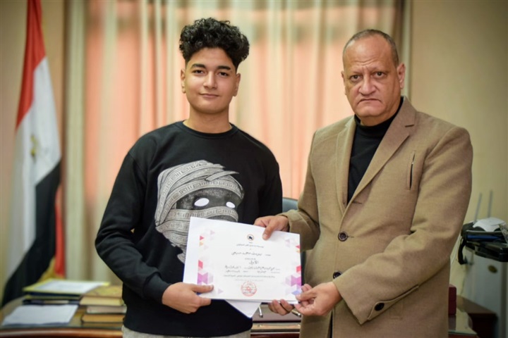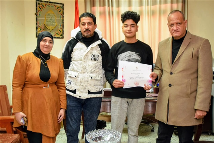 كرم الأستاذ محمود بدوي، وكيل وزارة التربية والتعليم بمحافظة بورسعيد الطلاب الفائزين في المسابقة الفنية الوزارية "آدم حنين" وذلك بمقر مكتبة بديوان المديرية.