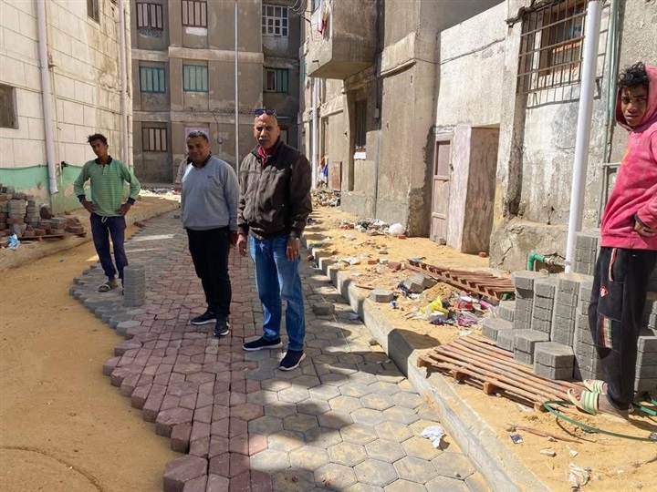 وشهدت منطقة التصنيع، استمرار أعمال زراعة أعمدة الإنارة وصب بلاعات تصريف مياه الأمطار إلى جانب تركيب بلاطات الإنترلوك بالأرصفة بما يسهم في رفع كفاءة الطرق وتحسين الشكل الحضاري.