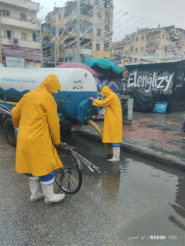 بمتابعة من الأستاذة شيماء العزبي، شهد حي المناخ انتشاراً واسعاً لسيارات "الفاكيوم" وفرق الطوارئ لرفع تجمعات الأمطار بشارع عاطف السادات، مع التركيز على النقاط الحيوية أمام مستشفى المبرة وشارع ٢٣ يوليو، لضمان وصول المواطنين للمنشآت الطبية بسهولة ويسر.