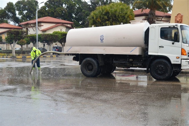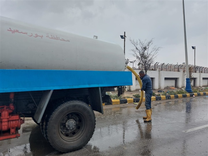 وجه الأستاذ باسم عمر – رئيس حي غرب، برفع درجة الاستعداد بمدخل المحافظة الغربي وعلى طريق (بورسعيد - دمياط)، وتمركز سيارات الشفط للتعامل الفوري مع أي تجمعات للمياه على الطريق السريع، تجنباً لوقوع الحوادث وحفاظاً على الأرواح.