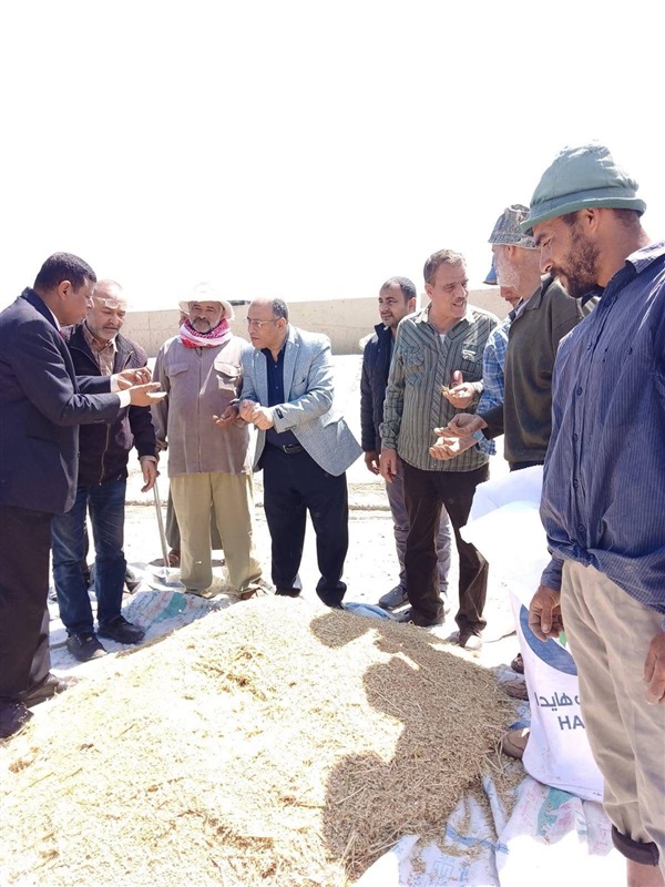 استقبل الدكتور حسني عطية مدير مديرية الزراعة، الدكتور محمود عبد العزيز رئيس الإدارة المركزية للأراضي والمياه، لمتابعة يوم حصاد محصول القمح بحقل إرشادي بجمعية "خالد بن الوليد". وأظهرت التجربة نجاحاً كبيراً في ترشيد مياه الري والأسمدة المعدنية، محققة إنتاجية متميزة تقدر بـ 18 إلى 20 إردباً للفدان.