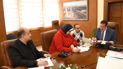محافظ بورسعيد ورئيسة الأمانة الفنية للتحالف الوطني ورئيس هيئة الرعاية الصحية يتفقدون قافلة المساعدات الإنسانية