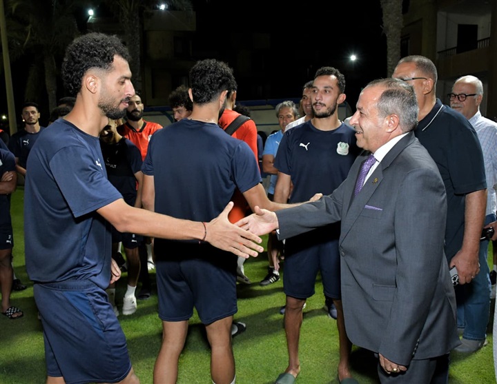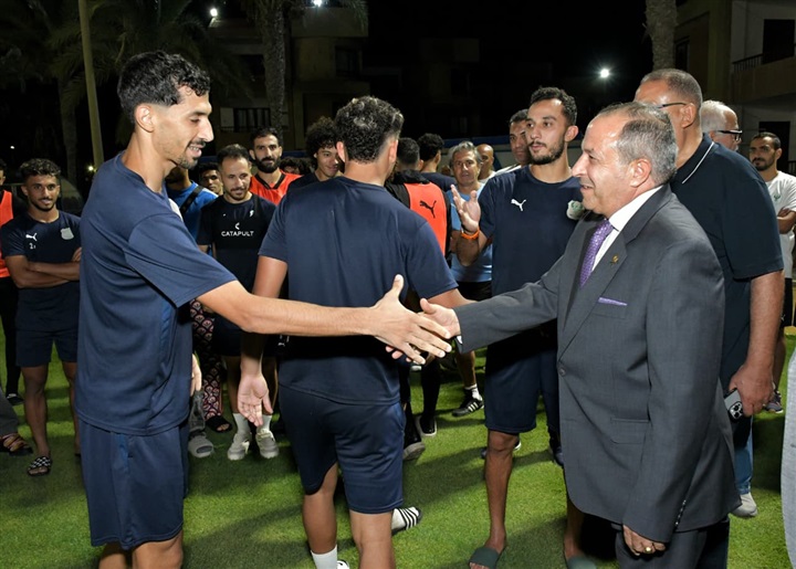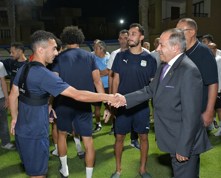 محافظ بورسعيد يلتقي لاعبي المصري في المران ويطالب اللاعبين بالعودة للانتصارات