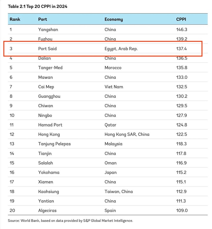 ميناء شرق بورسعيد يحصد المركز الثالث عالميًا في مؤشر أداء الموانئ لعام 2024