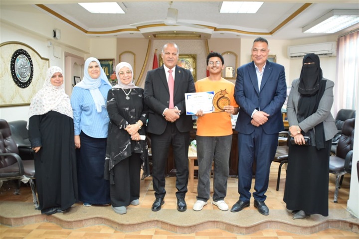 كما تم تكريم الطالب يوسف الغضبان المقيد بمدرسة على سليمان الابتدائية لحصوله على المركز العاشر على مستوى الجمهورية فى مسابقة اللعبة المبتكرة ومشرفته الأستاذة إيمان يوسف.