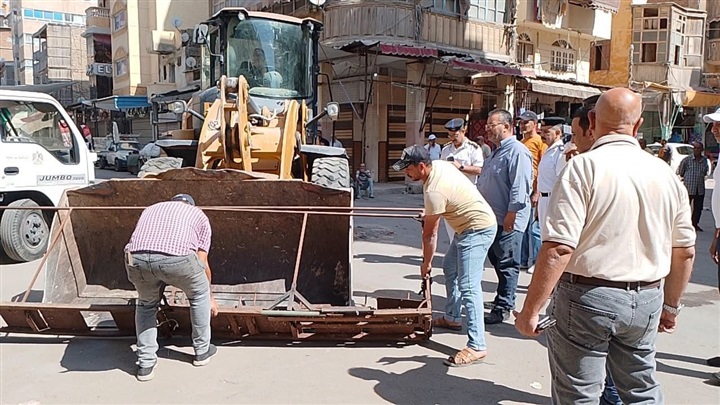 للأسبوع الثالث..استمرار إزالة الإشغالات بشارع الحميدي ببورسعيد