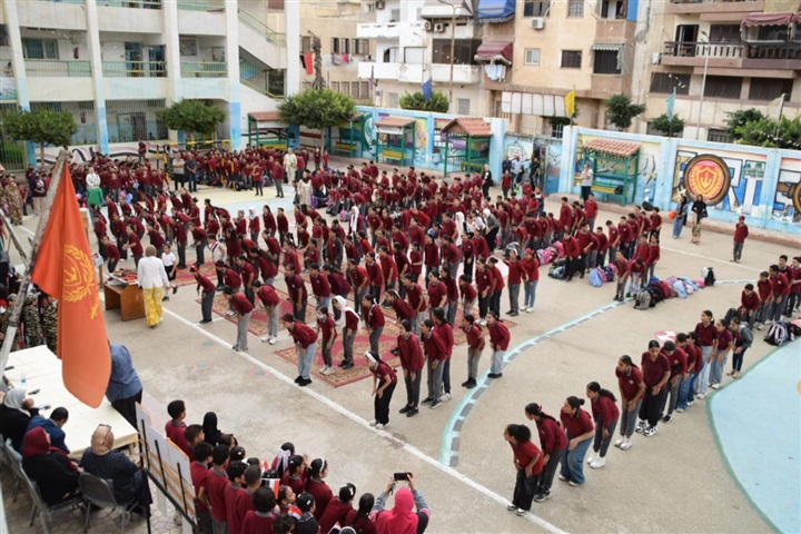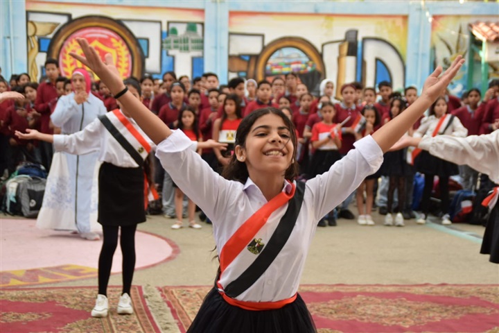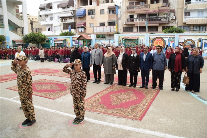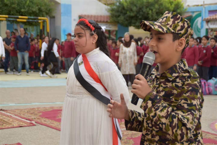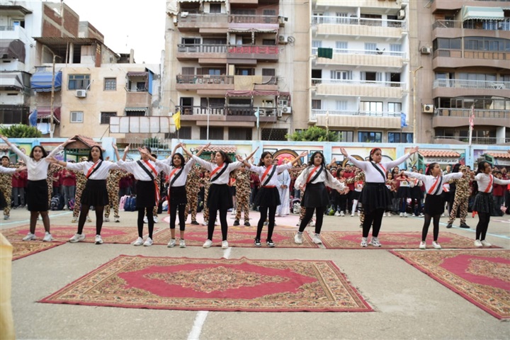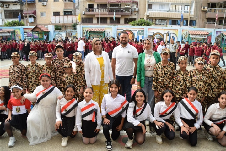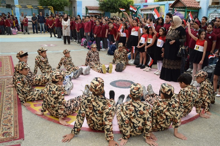 مدير تعليم بورسعيد يشارك طلاب مدرسة تنيس الابتدائية احتفالهم بنصر أكتوبر