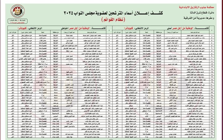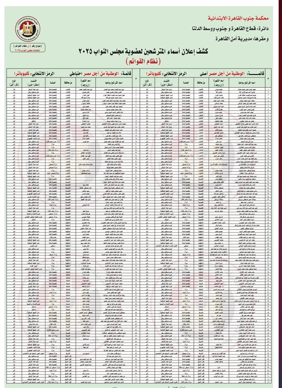 كشفت الهيئة الوطنية للانتخابات عن أسماء المرشحين النهائية ضمن "القائمة الوطنية من أجل مصر" لخوض انتخابات عضوية مجلس النواب لعام 2025 بنظام القوائم.