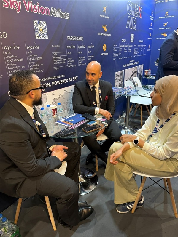 وتواصل Sky Vision Airlines حضورها القوي ضمن المعرض، حيث شهد جناح الشركة حركة نشطة من خلال استقبال وفود رسمية وزوار من كبار العملاء وممثلين عن شركات تصنيع الطائرات ومحركاتها، وشركات الخدمات والأعمال الأرضية.