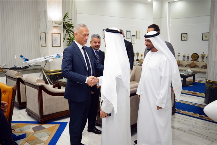 في إطار العلاقات الاستراتيجية المتنامية بين جمهورية مصر العربية ودولة الإمارات العربية المتحدة، استقبل الطيار أحمد عادل، رئيس مجلس الإدارة والعضو المنتدب التنفيذي للشركة القابضة لمصر للطيران، وفدًا رفيع المستوى من مجموعة شركة أبوظبي للطيران وعدد من الشركات الإماراتية المتخصصة في قطاعات الطيران والصيانة والشحن والتدريب، وذلك بالمقر الإداري لمصر للطيران في القاهرة.