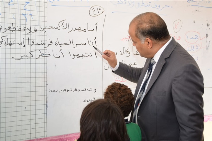 وخلال جولته داخل الفصول الدراسية، تابع شرح المعلمين، مشددا على أهمية المتابعة اليومية لمبادرات تنمية مهارات اللغة العربية لطلاب الصفوف الأولى، مع مراجعة مستويات الطلاب المقيدين في سجلات الضعاف وقياس مدى تحسن أدائهم بشكل مستمر.