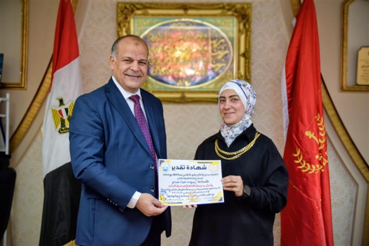 تكريم إدارة مدرسة القناة الإعدادية بنات ببورسعيد لاستضافة القوافل التعليمية