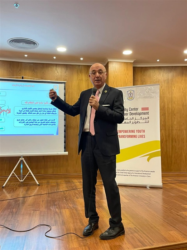 بحضور الدكتورة هبة يوسف سليمان، مدير المركز الجامعي للتطوير المهني ومدير إدارة التدريب بالجامعة والعقيد ابرام بباوى مدير إدارة التربية العسكرية بالجامعة وعدد من المتدربين المشاركين في الدورة من أعضاء هيئة التدريس والجهاز الإداري والطلاب،