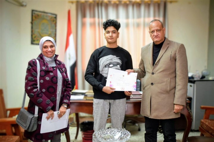 كرم الأستاذ محمود بدوي، وكيل وزارة التربية والتعليم بمحافظة بورسعيد الطلاب الفائزين في المسابقة الفنية الوزارية "آدم حنين" وذلك بمقر مكتبة بديوان المديرية.