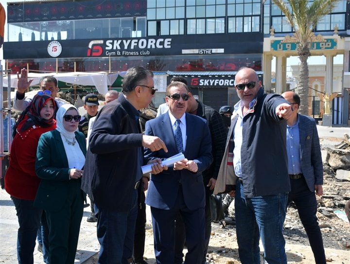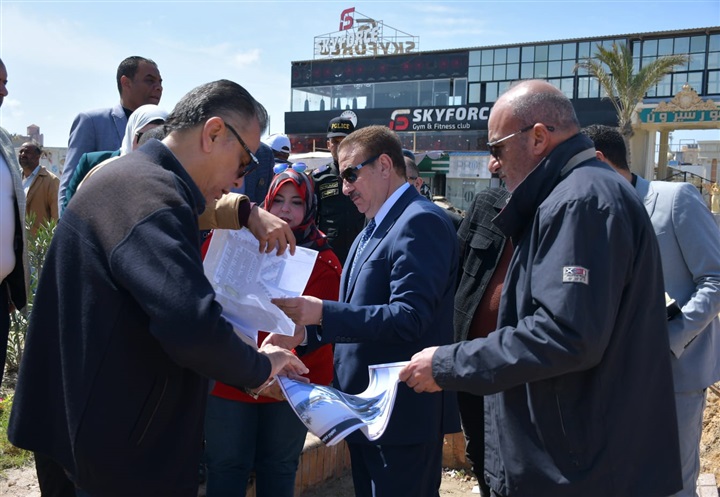 محافظ بورسعيد يتفقد سير العمل في تطوير ورفع لكفاءة ميدان مجمع المطاعم بحي المناخ
