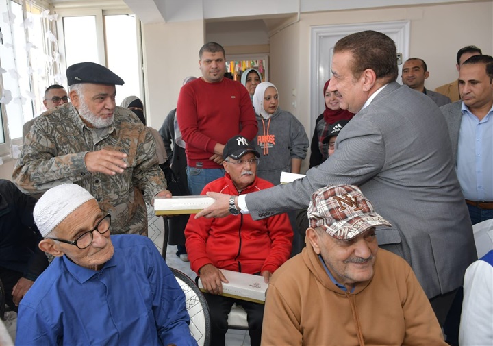 محافظ بورسعيد يزور دار بورفؤاد للمسنين ويقدم كحك العيدية لنزلاء الدار