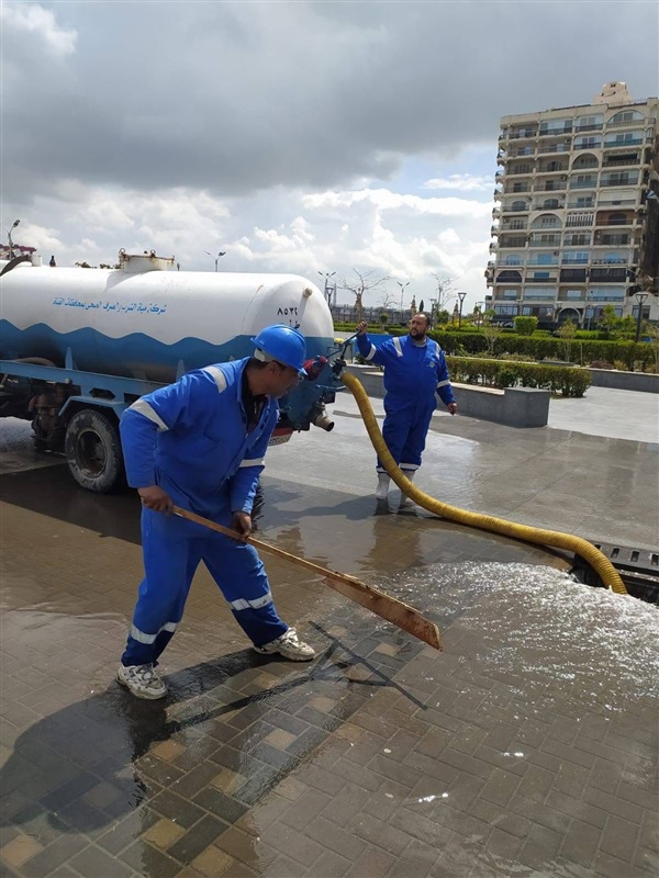 وفي سياق مواجهة الطقس، انتشرت فرق الطوارئ بمنطقة "شباب الخريجين" لشفط تجمعات المياه وتطهير الخطوط، مع تنفيذ حملات مكبرة لرفع إشغالات شارع "23 ديسمبر" شملت فروشات الخضروات والحوامل الخشبية المخالفة.