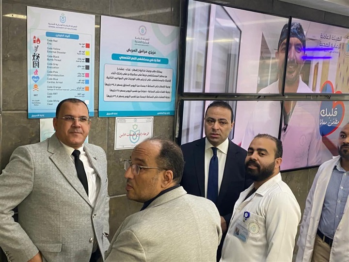 تنفيذاً لتوجيهات الدكتور أحمد السبكي، رئيس الهيئة العامة للرعاية الصحية والمشرف العام على مشروع التأمين الصحي الشامل، بضرورة المتابعة الميدانية المباشرة من الإدارات المركزية بالهيئة لكافة المنشآت الصحية؛ استقبل الدكتور إسماعيل الحفناوي، مدير عام فرع الهيئة ببورسعيد، الدكتور مصطفى شعبان، رئيس الإدارة المركزية للرعاية الصحية العلاجية برئاسة الهيئة، وبحضور الدكتورة نهى الدغيدى ، نائب مدير الفرع في جولة تفقدية لمستشفى النصر التخصصي للوقوف على انضباط الأداء الميداني صباح اليوم .