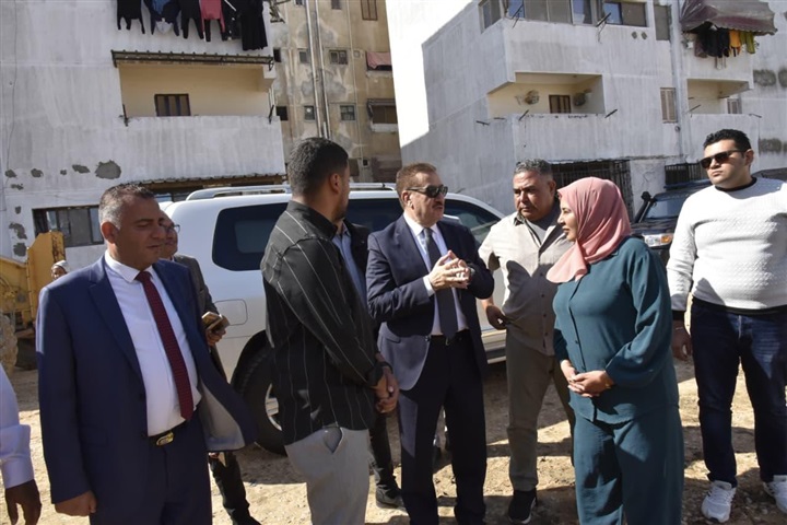 محافظ بورسعيد يتابع مستجدات أعمال تطوير ورفع كفاءة 239 عمارة بمنطقة خالد بن الوليد