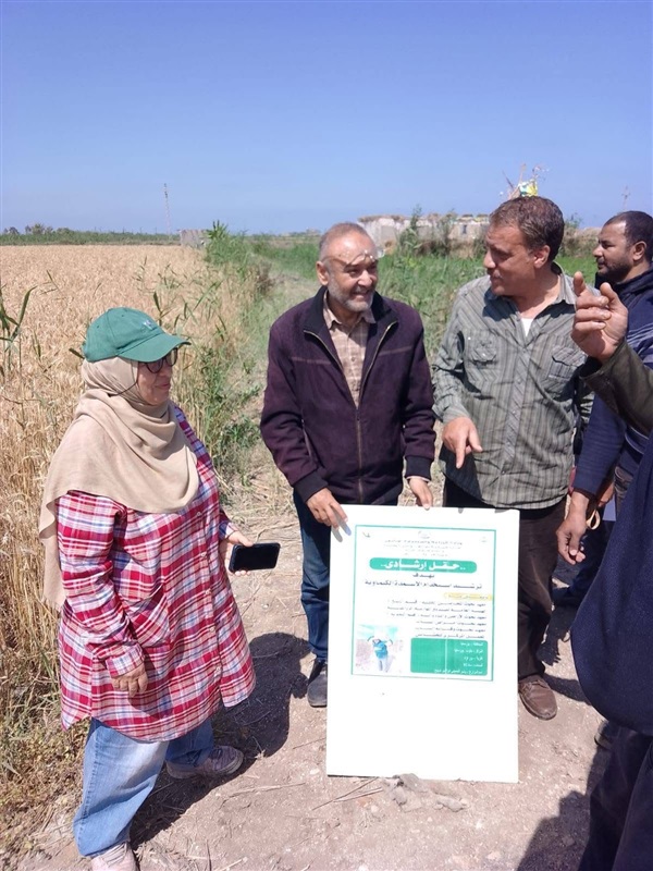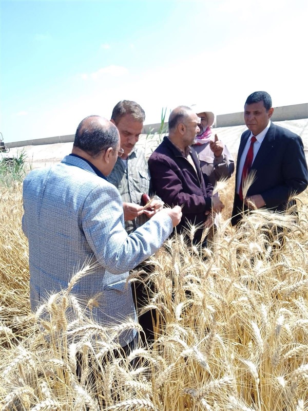 استقبل الدكتور حسني عطية مدير مديرية الزراعة، الدكتور محمود عبد العزيز رئيس الإدارة المركزية للأراضي والمياه، لمتابعة يوم حصاد محصول القمح بحقل إرشادي بجمعية "خالد بن الوليد". وأظهرت التجربة نجاحاً كبيراً في ترشيد مياه الري والأسمدة المعدنية، محققة إنتاجية متميزة تقدر بـ 18 إلى 20 إردباً للفدان.