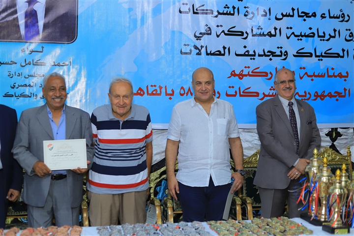 نظّم الاتحاد العام الرياضي للشركات برئاسة المحاسب محمد عثمان هارون بنادى الكهرباء للتجديف بالزمالك حفلًا مبهرًا واستثنائيًا لختام بطولة الشركات للتجديف، حيث جرى خلاله تكريم نخبة من أعظم قامات ورموز رياضة التجديف والكاياك في مصر، إلى جانب تكريم الهيئات المشاركة، تقديرًا لمسيرتهم الحافلة بالعطاء وجهودهم الكبيرة في خدمة الرياضة المصرية.