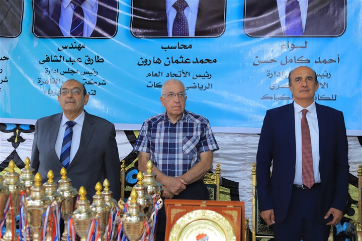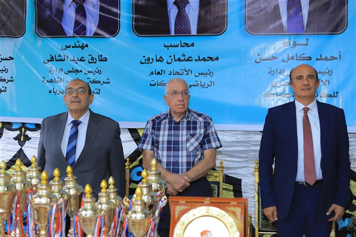 الكابتن علاء حسن البطل الأولمبي ورئيس نادي الكهرباء، علاء نعيم رئيس اللجنة الرياضية ونائب رئيس مجلس إدارة شركة شمال القاهرة لتوزيع الكهرباء للشئون التجارية.