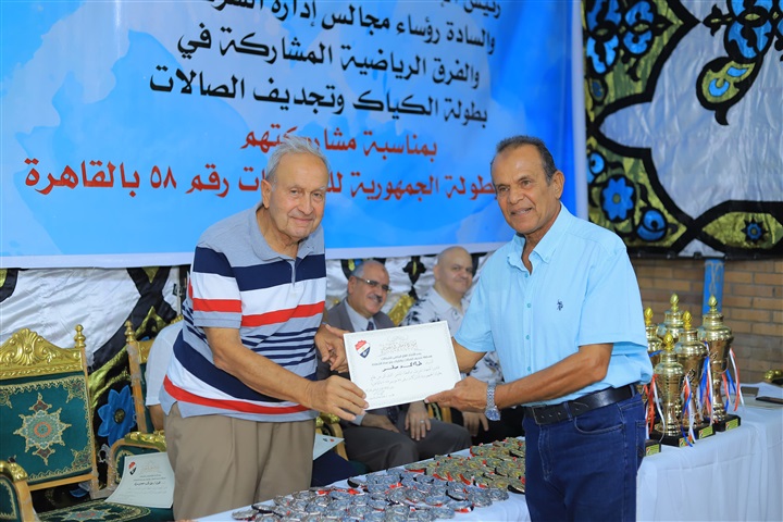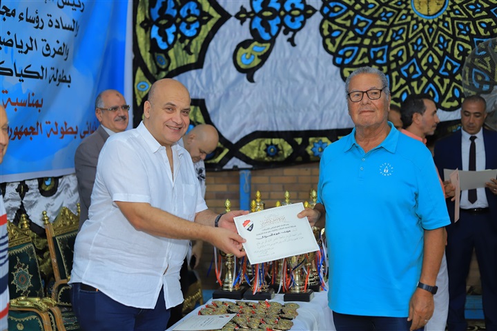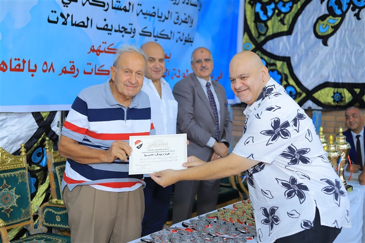 اللواء طارق عميره الرئيس الشرفي للاتحاد المصري للكانوي والكاياك، لمسيرته الرياضية التي تجاوزت الخمسين عامًا.