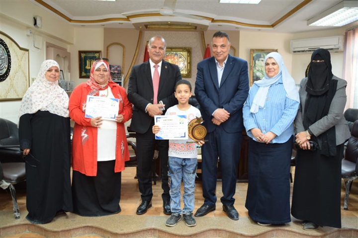 كما تم تكريم الطالب يوسف الغضبان المقيد بمدرسة على سليمان الابتدائية لحصوله على المركز العاشر على مستوى الجمهورية فى مسابقة اللعبة المبتكرة ومشرفته الأستاذة إيمان يوسف.
