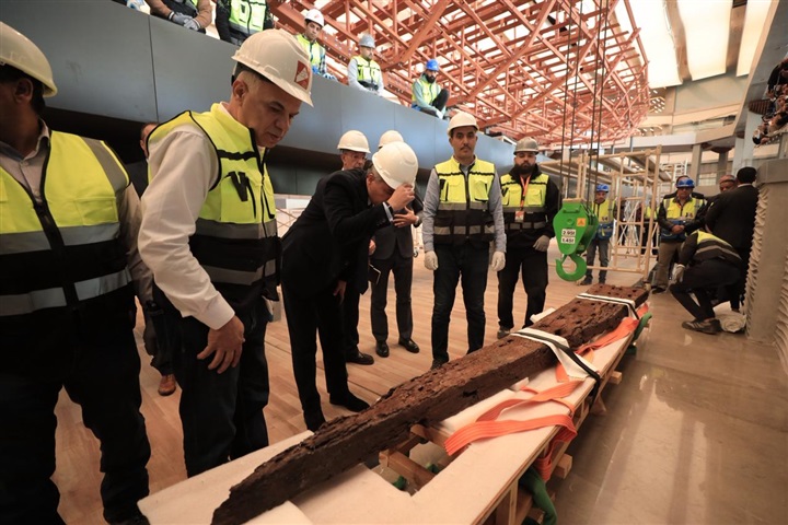 وزير السياحة والآثار يشهد تثبيت أول قطعة خشبية على الهيكل الخاص بإعادة تركيب مركب الملك خوفو الثانية بالمتحف المصري الكبير