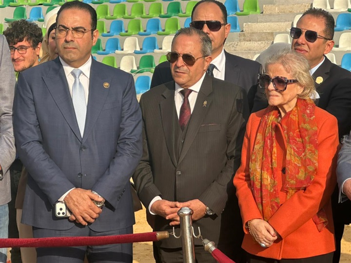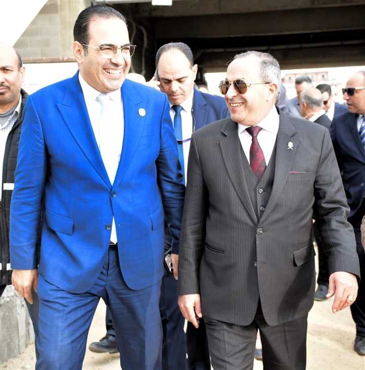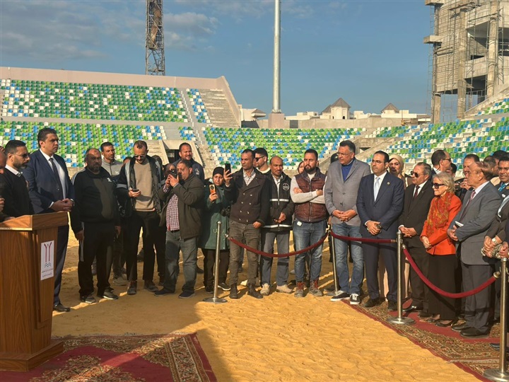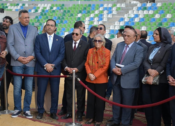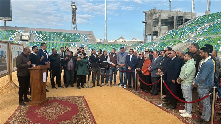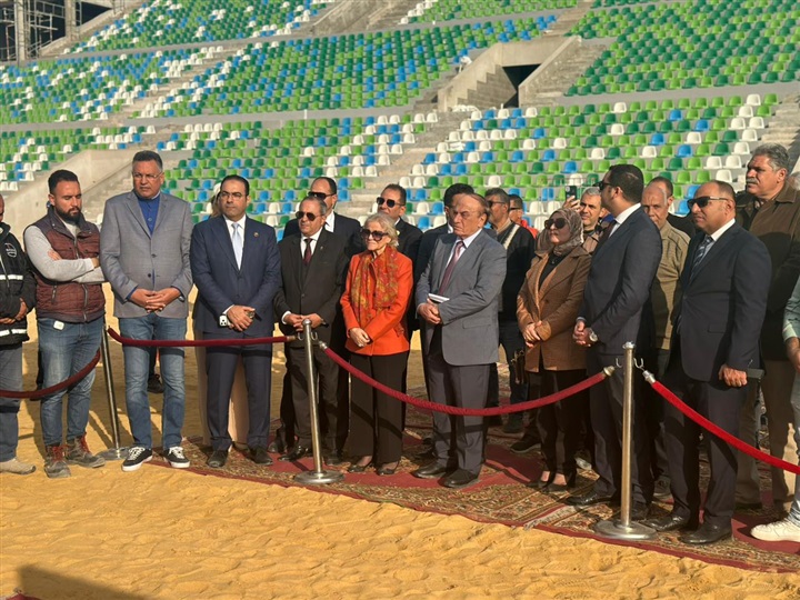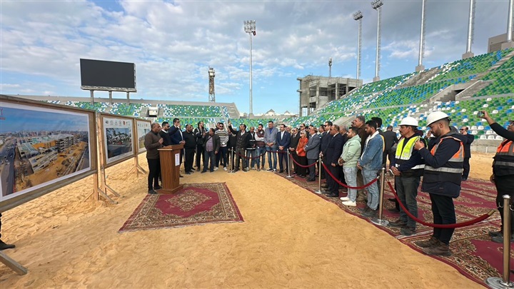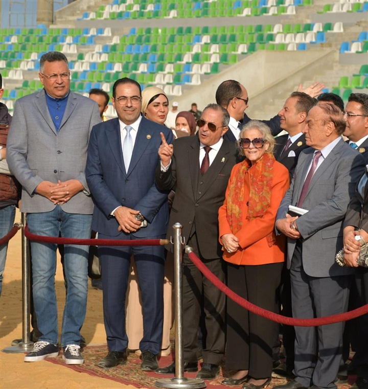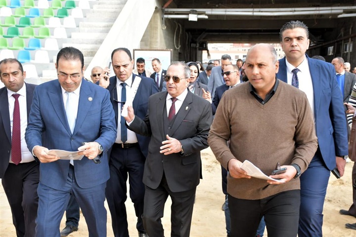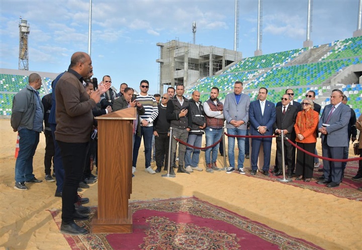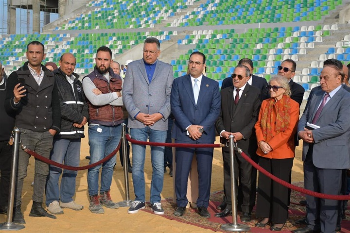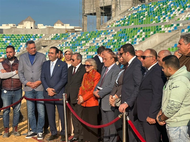 محافظ بورسعيد والسفيرة فايزة أبو النجا يتفقدان معدلات التنفيذ بمشروع إنشاء استاد النادي المصري