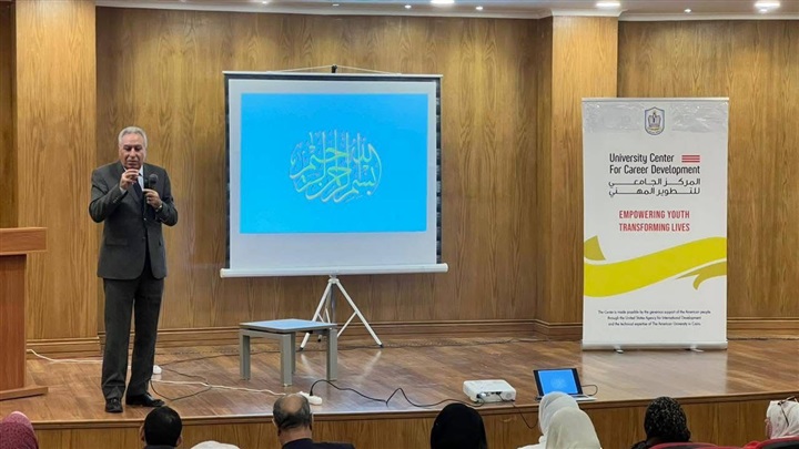 بحضور الدكتورة هبة يوسف سليمان، مدير المركز الجامعي للتطوير المهني ومدير إدارة التدريب بالجامعة والعقيد ابرام بباوى مدير إدارة التربية العسكرية بالجامعة وعدد من المتدربين المشاركين في الدورة من أعضاء هيئة التدريس والجهاز الإداري والطلاب،