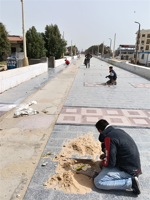 وتشمل الأعمال الجارية تنفيذ أعمال الرخام والمعالجات النهائية للأرضيات، وتركيب الإضاءة العامة الحديثة، واستكمال التشطيبات الجمالية والإنشائية بما يتماشى مع الهوية الحضارية والسياحية لمحافظة بورسعيد، ويحقق أعلى مستويات الجودة في تنفيذ المشروع