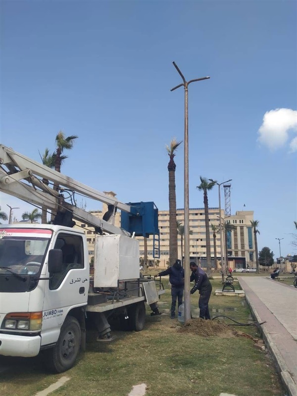 تابع الدكتور إسلام بهنساوي رئيس حي الشرق أعمال صيانة وتأمين منظومة الإضاءة العامة بنطاق الحي، حيث قامت إدارة الكهرباء بزراعة أعمدة إنارة بحديقة الشهداء “المسلة”، إلى جانب إصلاح كابل مغذٍ لأعمدة الإنارة بامتداد شارع الجمهورية جانبي ميناء الصيد، بما يسهم في تحسين مستوى الإضاءة ورفع كفاءة الطريق.