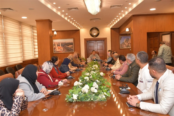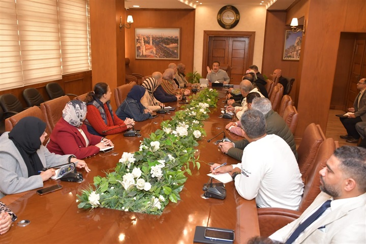 محافظ بورسعيد يعقد اجتماعًا موسعًا مع رؤساء الأحياء وبورفؤاد ونوابهم بحضور شركة النظافة